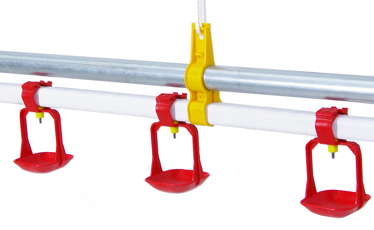 rurę nośną okrągłą o średnicy 26,75 mm. Rura nośna oprócz funkcji stabilizującej system pojenia kurczaków pełni również rolę swoistej antygrzędy zabezpieczając przed przysiadywaniem ptaków na linii. Całość jest w stanie obsłużyć do 110 niosek lub brojlerów.
