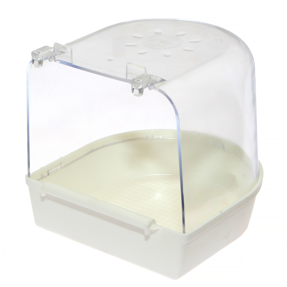 Praktyczna duża wanienka kąpielowa przeznaczona do pielęgnacji mniejszych ptaszków egzotycznych, takich jak kanarki, słowiki, papużki faliste, nimfy, itp. Z racji, iż montaż pojemnika kąpielowego dla papug jest na zewnątrzklatki, hodowca ma swobodny dostęp do wanienki, nie musząc ingerować do jej środka i dodatkowo niepotrzebnie niepokoić ptaków. Basen kąpielowy dla kanarków zewnętrzny posiada uchwyty do zawieszenia na kracie klatki.