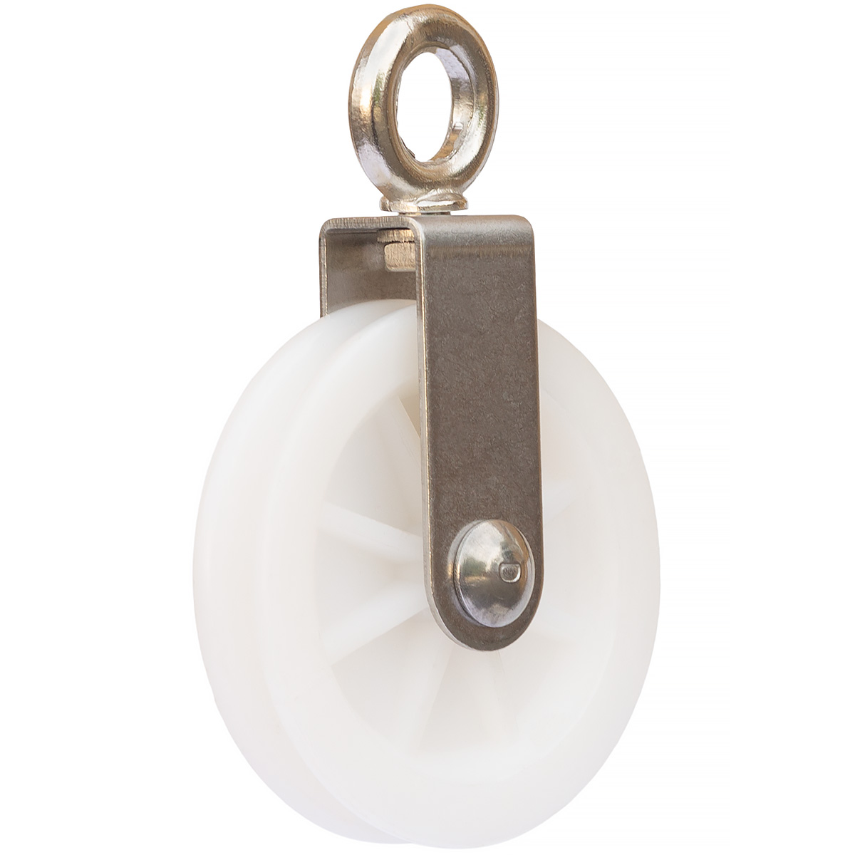 Bloczek o średnicy 65 mm z kółkiem wykonanym z wytrzymałego nylonu, dedykowany jest szczególnie do prowadzenia linek nylonowych, stylonowych, a także stalowych o maksymalnej średnicy 5 mm. Bloczek posiada korpus ze stali nierdzewnej oraz demontowalny uchwyt w kształcie oczka ze stali ocynkowanej.
