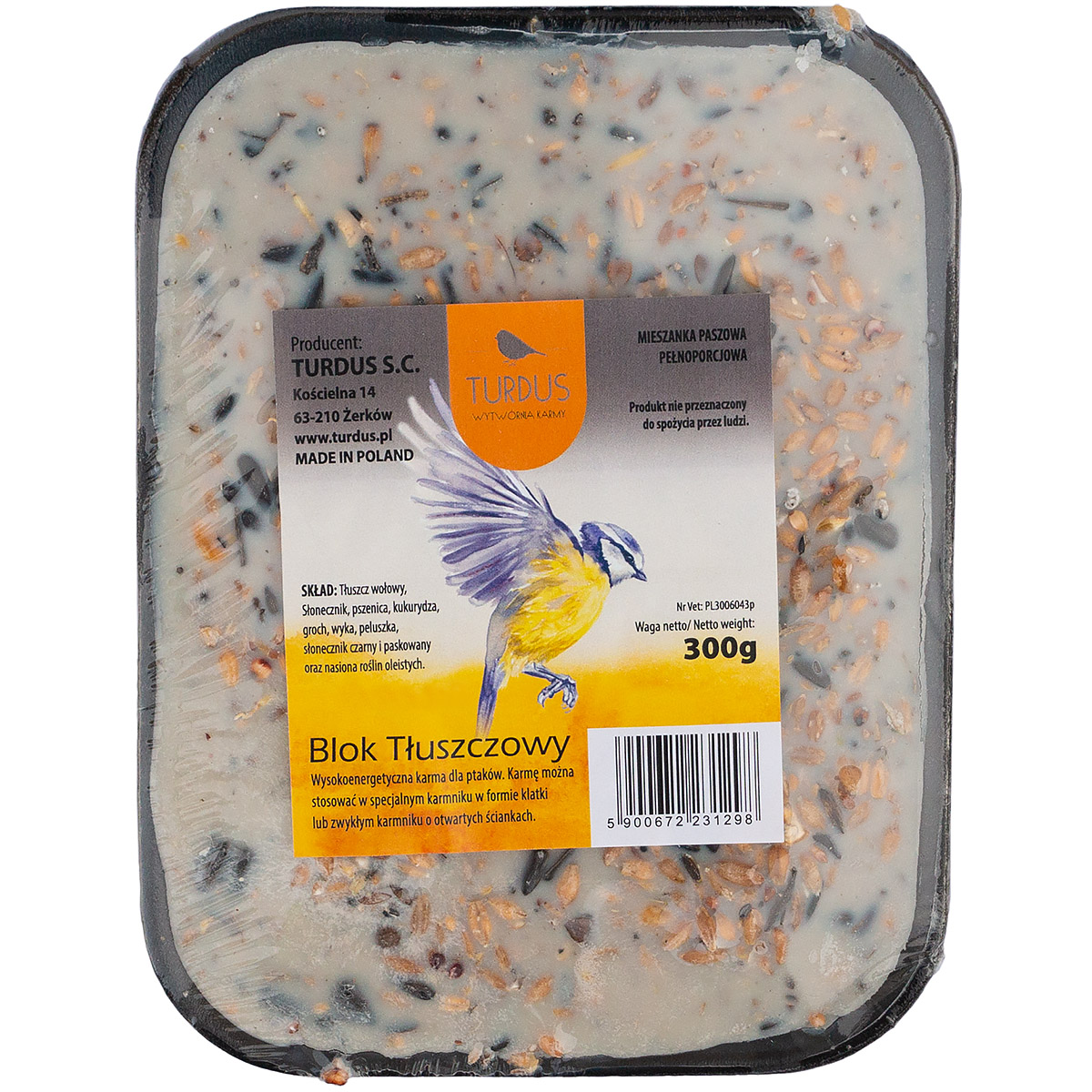 Blok tłuszczowy to prosty sposób na dokarmienie różnych gatunków dzikich ptaków takich jak sikorki, kowaliki, dzięcioły i inne. Karma dla ptaków jest cennym źródłem zapasu energetycznego zwłaszcza podczas przymrozków, kiedy dostęp do naturalnego pokarmu jest ograniczony.