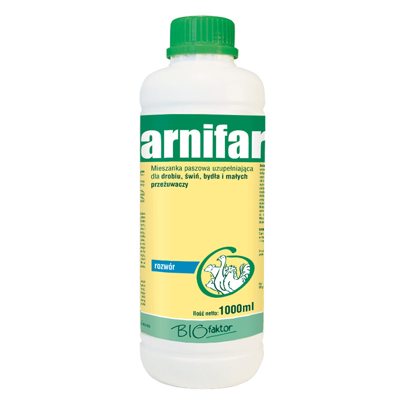 Witaminy dla drobiu, trzody chlewnej i bydła. Podawanie środka CARNIFARM przyczynia się w głównej mierze do poprawy kondycji fizycznej zwierząt oraz większych i szybszych przyrostów masy. Bogaty skład preparatu, w którym zawarta jest karnityna wpływa na lepszą wydolność zwierząt. Mieszanka witamin CARNIFARM wnosi wiele korzyści w hodowli zwierząt do których należą: