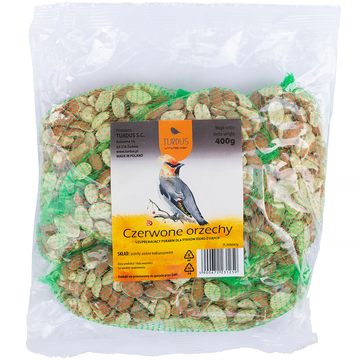 Czerwone orzechy to pokarm do ptaków wolnożyjących umieszczony w specjalnej siatce, tak aby ptaki swobodnie mogły pobierać pokarm. Orzechy sa źródłem zapasu energetycznego niezbędnego zwłaszcza podczas okresu zimowego, kiedy podczas przymrozków, czy przez okrywę śnieżną ptaki mają utrudniony dostęp do zdobywania samodzielnie pokarmu. Pokarm dla dzików ptaków świetnie również sprawdzi się podczas upalnych dni.
