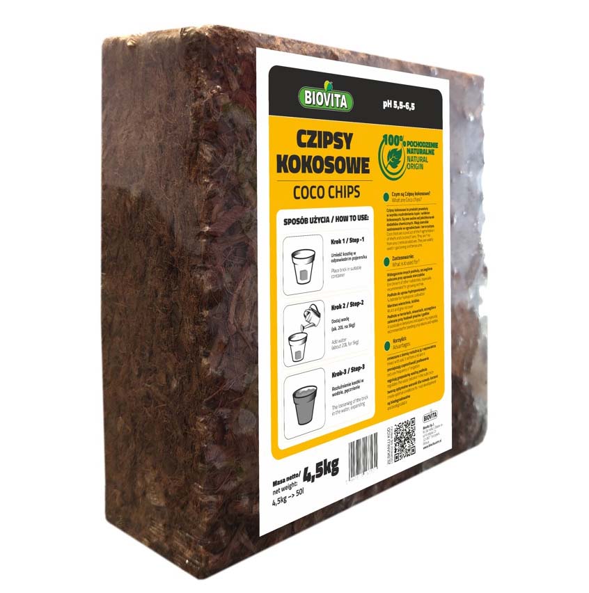 Zadaj pytanie o produkt Czipsy kokosowe do napowietrzania gleby brykiet 4,5 kg 50 l