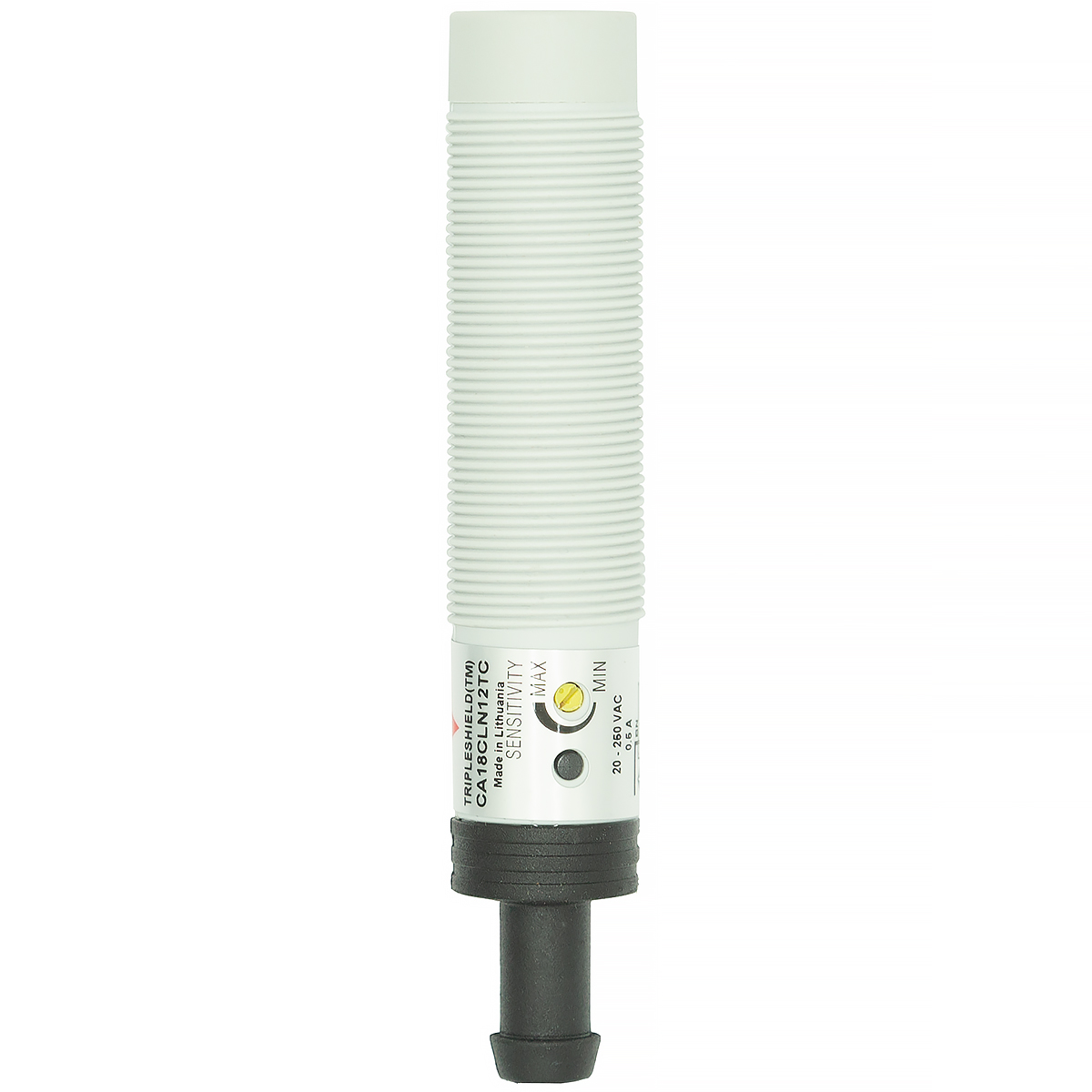 Zakres działania sondy mieści się w przedziale 3-12 mm i można go regulować za pomocą potencjometru. W zestawie znajduje się śrubokręt do ustawiania zakresu działania. Czujnik pojemnościowy sygnalizuje swoją pracę za pomocą diody LED. Obudowa urządzenia została wykonana z tworzywa sztucznego i ma kształt nagwintowanej tulejki. Do sensora dołączone są dwie nakrętki umożliwiające montaż urządzenia. Czujnik ma długość 78 mm natomiast jego średnica wynosi 17 mm. Sonda jest wyposażona w przewód dwużyłowy o długości 2 m.