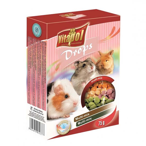 Bogate w wapń, zdrowe przysmaki dla królików, chomików, świnek morskich, szynszyli oraz innych gryzoni. Dropsy mleczne dla dostępne są w opakowaniu 75 gramów, którym można wyróżnić 3 rodzaje przekąsek o różnych smakach.