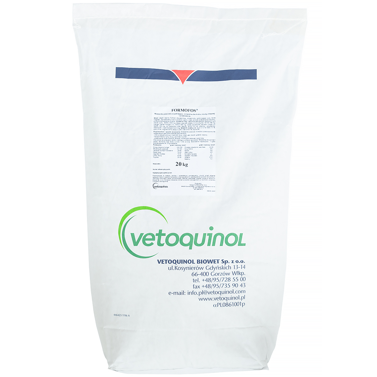 Formofos w opakowaniu 20 kg. To uzupełniająca mieszanka mineralna dla wszystkich gatunków zwierząt hodowlanych. Zestaw minerałów dla drobiu polecany jest szczególnie hodowcom zwierząt zagrodowych, w celu odpowiedniego zbilansowania składników pokarmowych. Mieszanka paszowa dla drobiu może być stosowana w żywieniu zwierząt na każdym etapie produkcji.