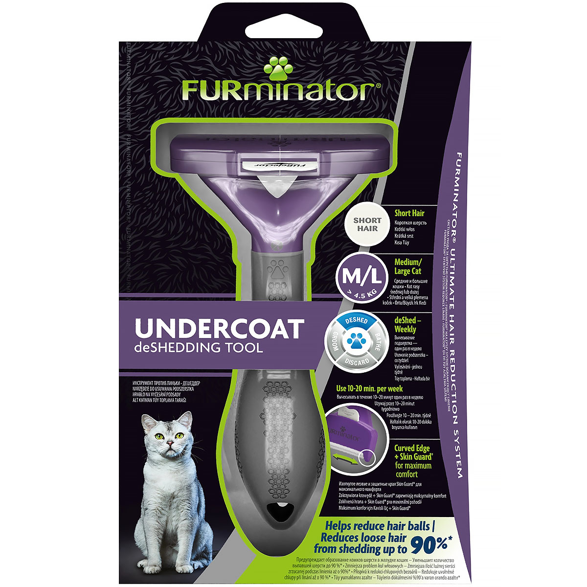 FURminator dla kotów krótkowłosych dużych ras - Large to narzędzie przystosowane do usuwania zbędnego, zalegającego podszerstka i luźnych włosów.