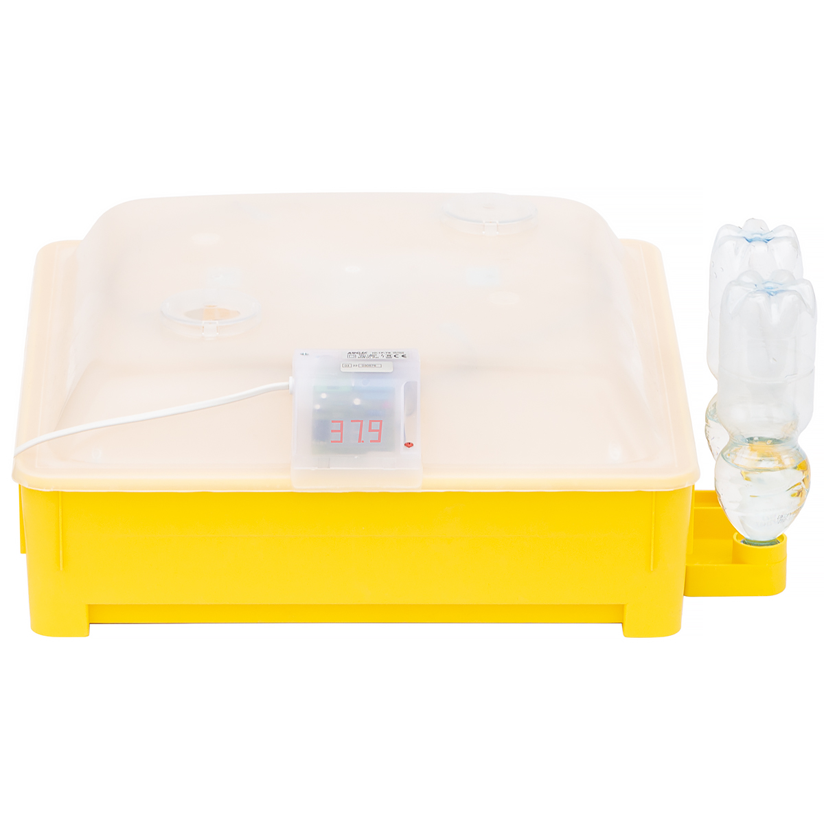 Urządzenie do inkubowania jaj wyposażone zostało w wydajną grzałkę o mocy 100W. Za równomierne