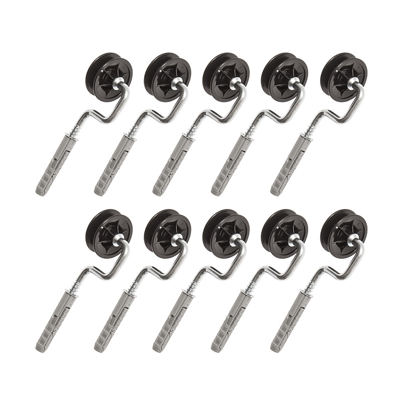 Zestaw izolatorów narożnych do pastucha na kuny przeznaczony do montażu w murze. Do każdego izolatora dołączony jest kołek rozporowy umożliwiający wkręcenie izolatora.Izolator narożny posiada obrotową rolkę, która zabezpiecza linkę przed nadmiernym naprężeniem i przetarciem. Na każdy narożnik budynku przypada po 4 szt. izolatorów. W ofercie dostępne są również izolatory pośrednie przeznaczone do montażu zabezpieczenia przeciw kunom.