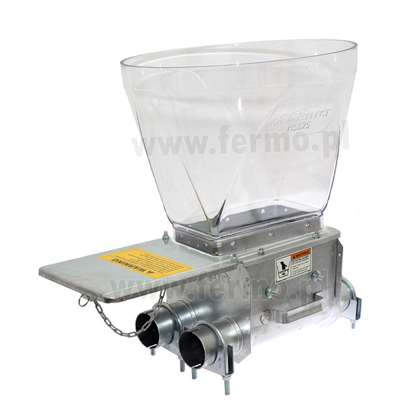 Solidne i wytrzymałe kompletne podwójne jarzmo z prostym butem zsypowym pod silos paszowy. Skrzynia jarzma pod silos została wykonana z mocnej stali ocynkowanej, natomiast kosz zsypowy do jarzma pod silos wykonany został z wysokiej jakości tworzywa sztucznego o dużej odporności na uszkodzenia mechaniczne. Niezaprzeczalnym atutem jest transparentna obudowa buta, która pozwala na stałą kontrolę zasypu paszy z silosa na linię poprzeczną karmienia.