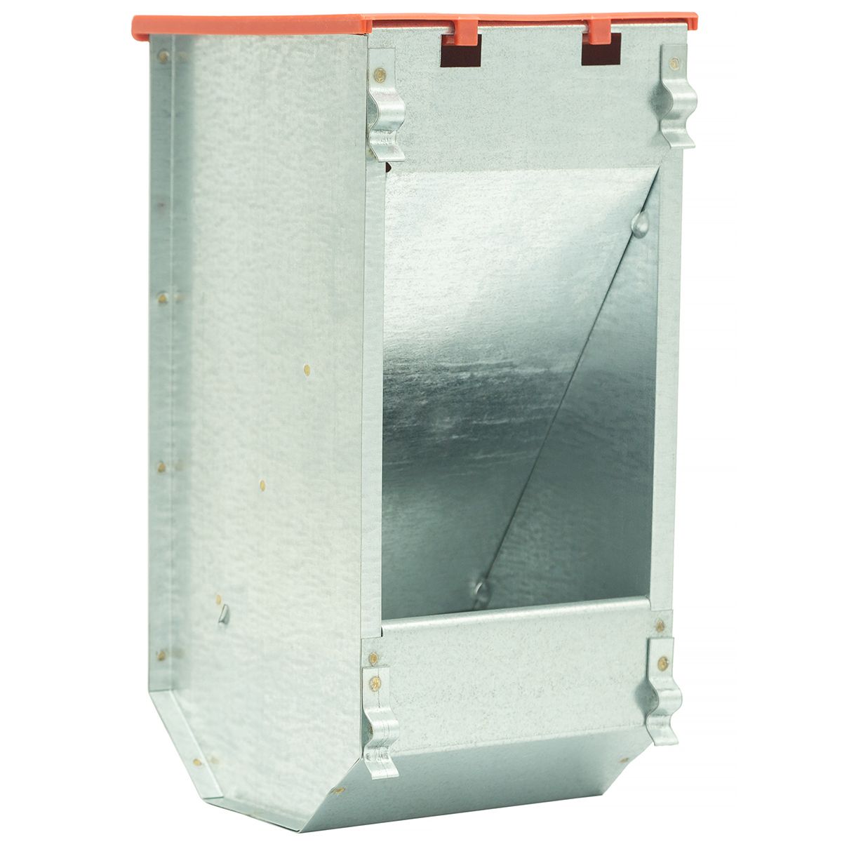 Jednokomorowy karmnik dla królików wykonany z blachy ocynkowanej, odpornej na rdzę.