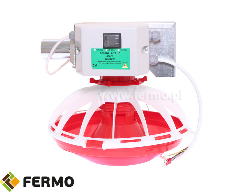 Karmidło końcowe systemów karmienia posiada wejście na do linii wzdłużnej fi45mm. Z drugiej strony przygotowane jest przyłącze na silnik napędowy do systemu podawania paszy. Zarówno silnik jak i karmidło z czujnikiem zasypowym wymagają