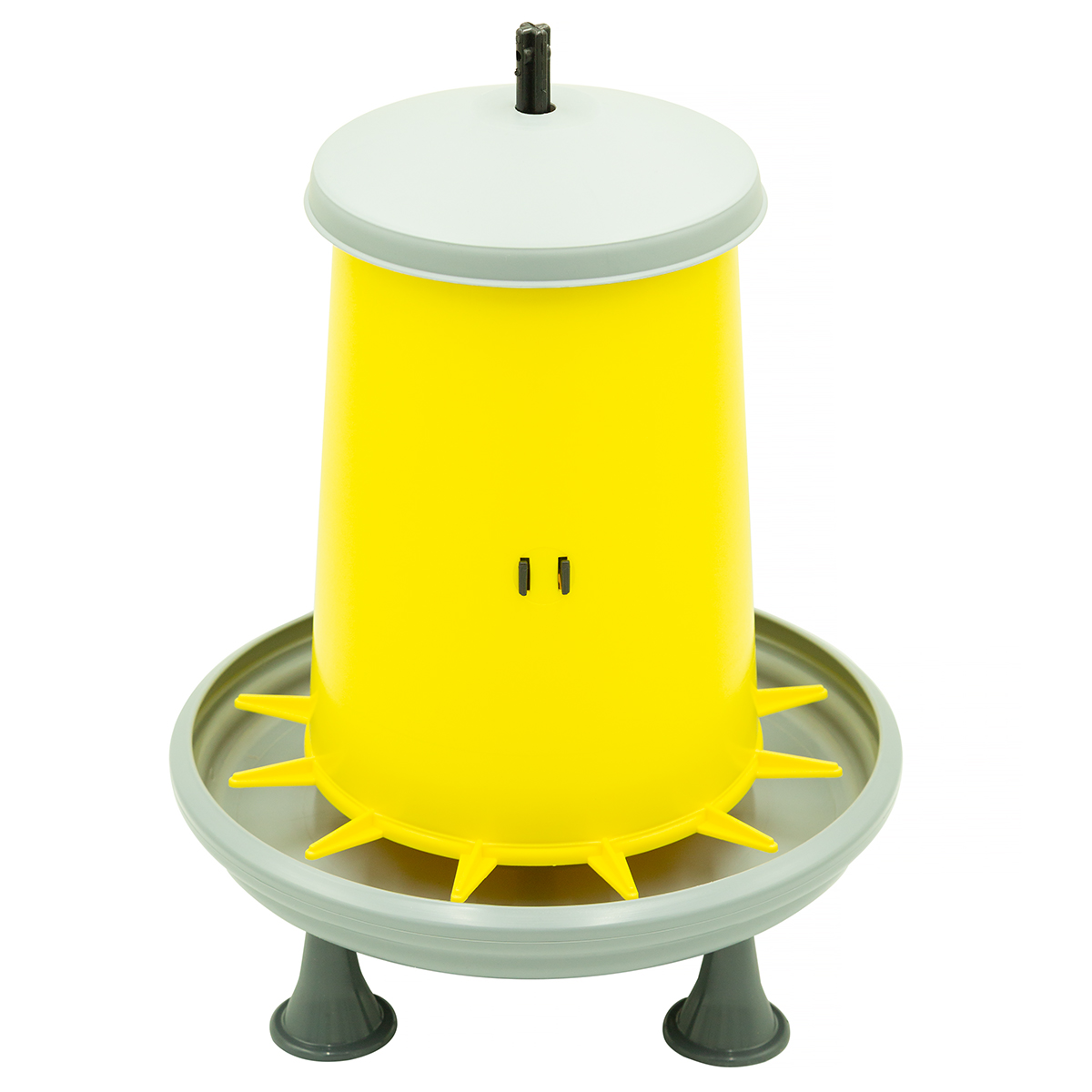 Karmidło zasypowe dla drobiu jest mniejszą wersją popularnego i niezawodnego karmidła Helios. Jest bardzo funkcjonalne i wygodne, zarówno z punktu użytkowania przez hodowcę, jak i pobierania paszy przez drób.