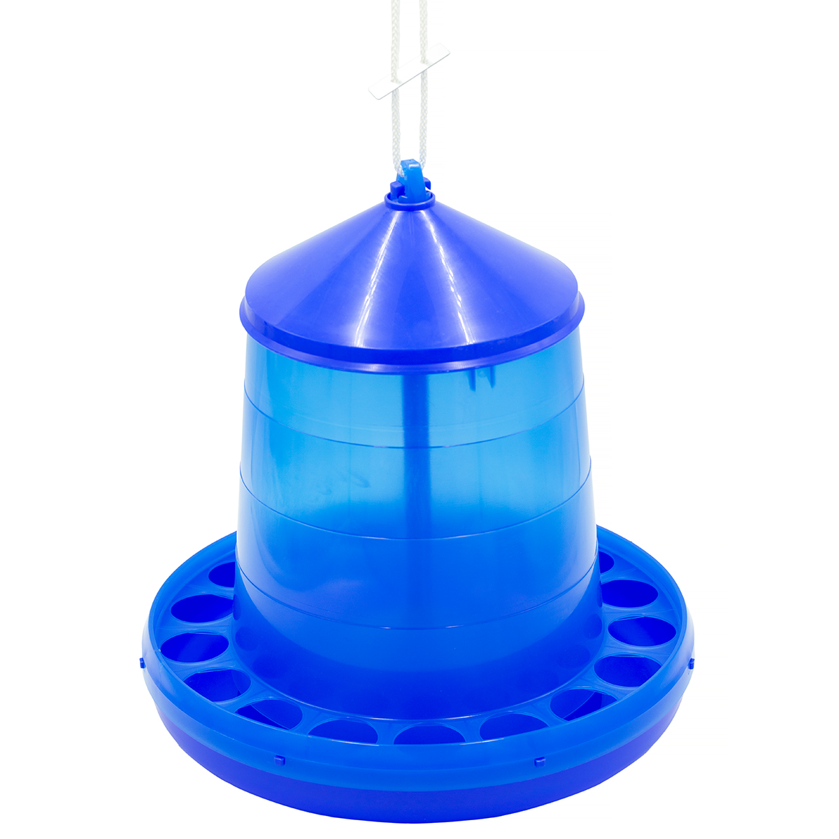 Karmidło dla kur posiada w komplecie sznurek oraz ślizgacz do regulacji wysokości karmnika. Zestaw można wykorzystać do powieszenia karmnika w kurniku lub w wolierze, co dodatkowo ograniczy rozsypywanie i zabrudzanie paszy.
