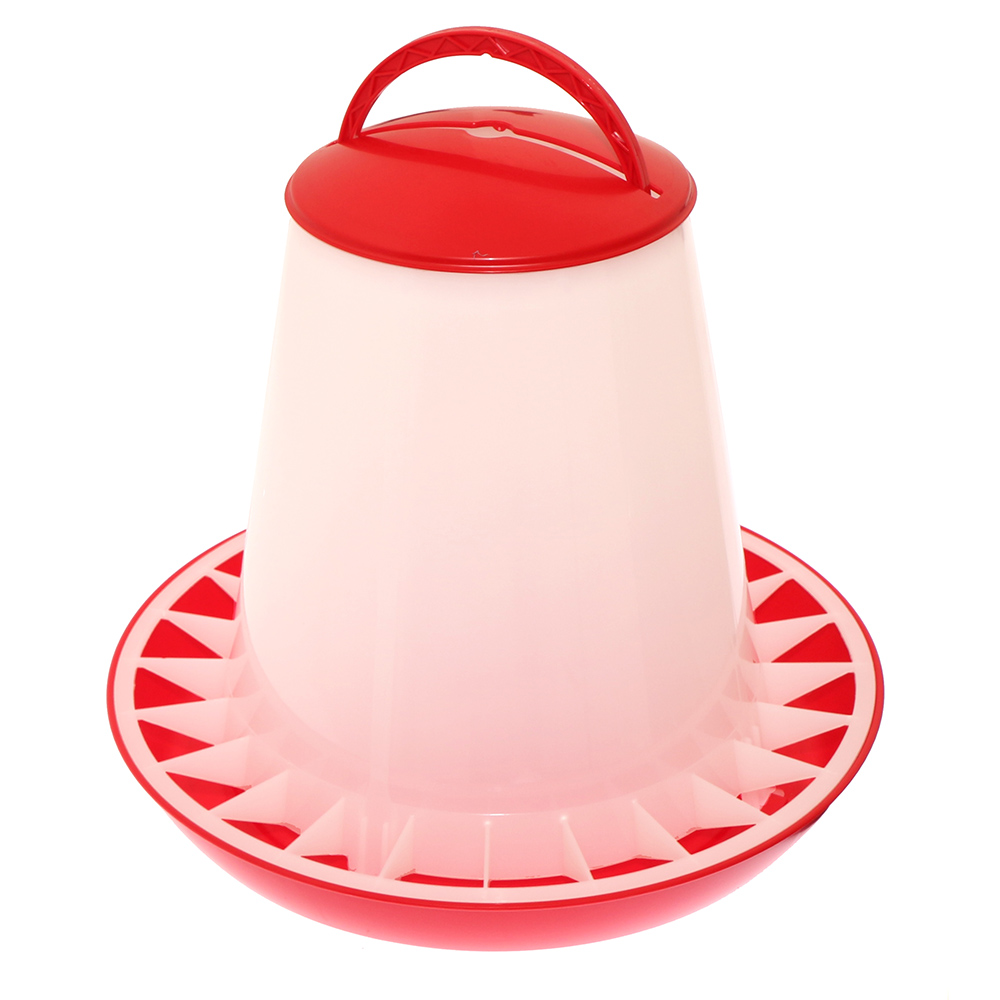 Solidne karmidło zasypowe dla drobiu o pojemności do 10kg paszy. Karmidło wykonane jest z mocnego tworzywa sztucznego odpornego na uderzenia czy pękaniem. Jest specjalnie przygotowane do podawania karmy kurom nioskom czy brojlerom.