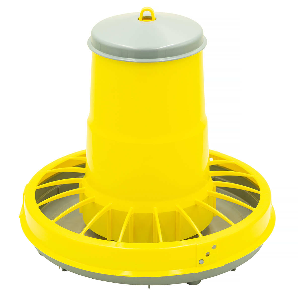 Nowoczesny, kompaktowy system zamykania karmidła umożliwia regulację szerokości szczeliny zasypowej na 2 poziomach. Dzięki temu możemy dostosować ilość paszy do np. wieku czy rodzaju ptaków. Sposób napełnienia karmnika jest bardzo łatwy. Należy dolną misę z cylindrem zamknąć pozostawiając żądaną szczelinę, postawić na ziemi, zasypać paszą, przykryć przykrywką.Pasza uzupełnia się samoistnie w miarę wyjadania przez zwierzęta.<