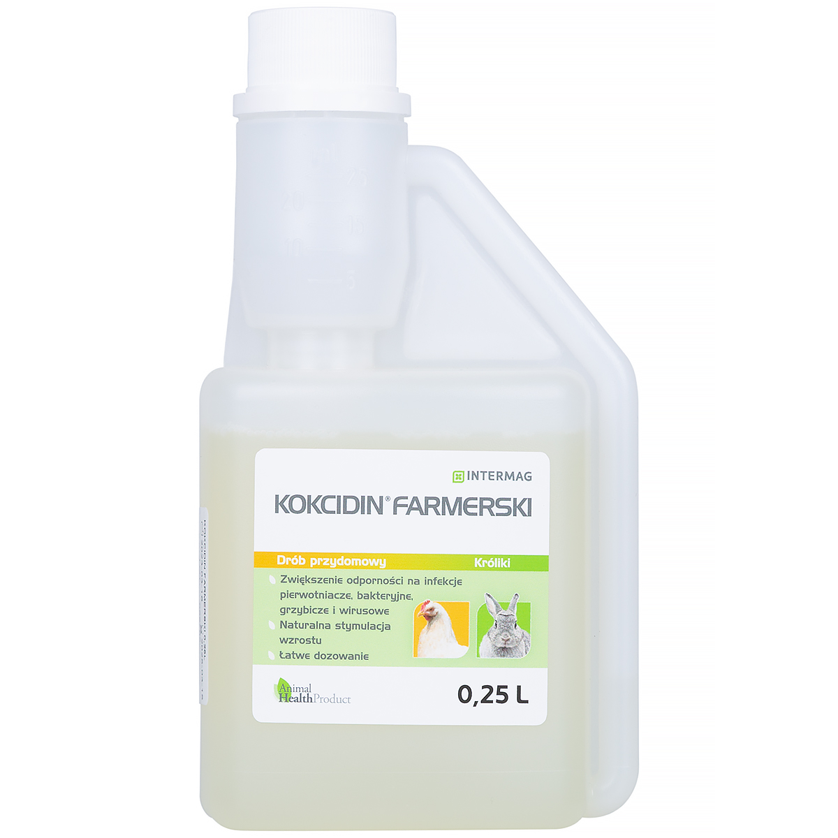 Kokcidin to preparat rozpuszczalny w wodzie przeciw kokcydiozie. Polecany jest dla wszystkich hodowców drobiu, gołębi oraz zwierząt futerkowych. Preparat na kokcydiozę znajdzie również zastosowanie na wszelkie pleśni i mytoksyny zagrażające zwierzętom hodowlanym.