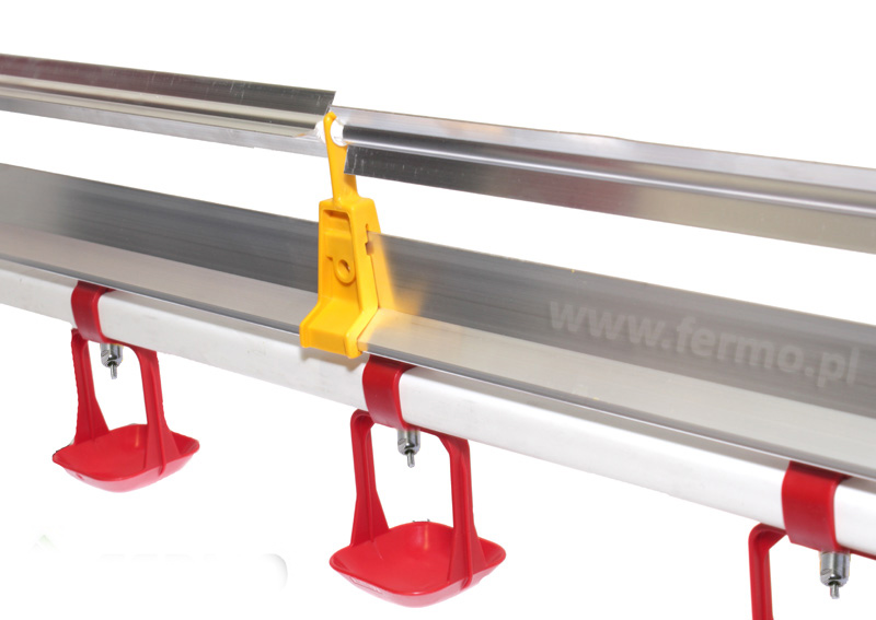Oferowana linia pojenia dla niosek gotowa jest do montażu w budyku inwentarskim, którego długość wynosi m.in. 6 m. W zestawie znajdują się zestawy do podwieszenia, które pozwalają na stabilne przymocowanie linii oraz wyregulowanie jej wysokości.