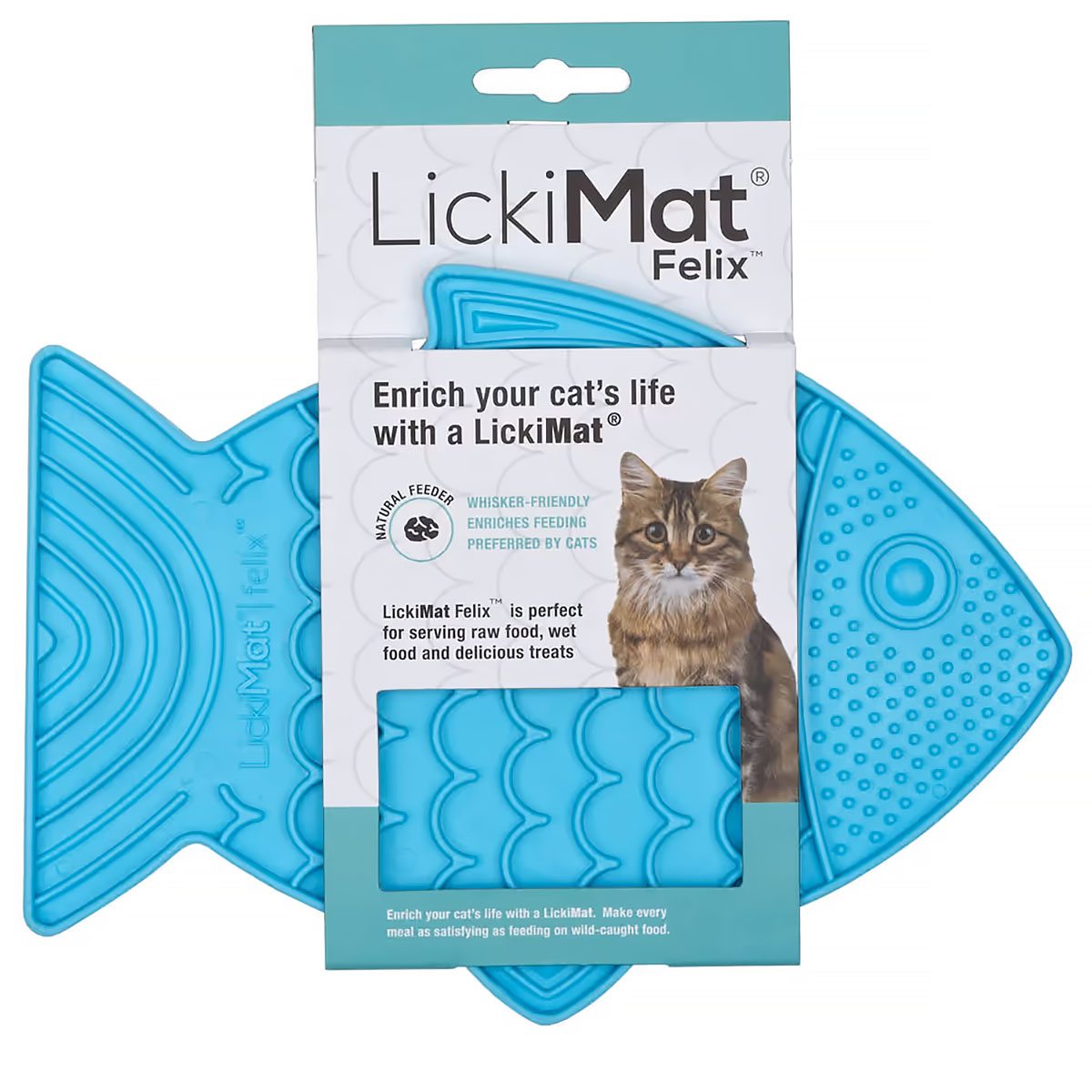 LickiMat Classic Felix mata do lizania dla kota turkusowa to nowoczesna mata do lizania, stworzona z myślą o kotach, które potrzebują dodatkowej stymulacji umysłowej i chwil relaksu. Jeśli Twój pupil reaguje niepokojem na różne sytuacje, jest łasuchem, lubisz dbać o jego wagę, a jednocześnie chcesz zapewnić mu fascynujące zajęcie, ta mata będzie idealnym rozwiązaniem.