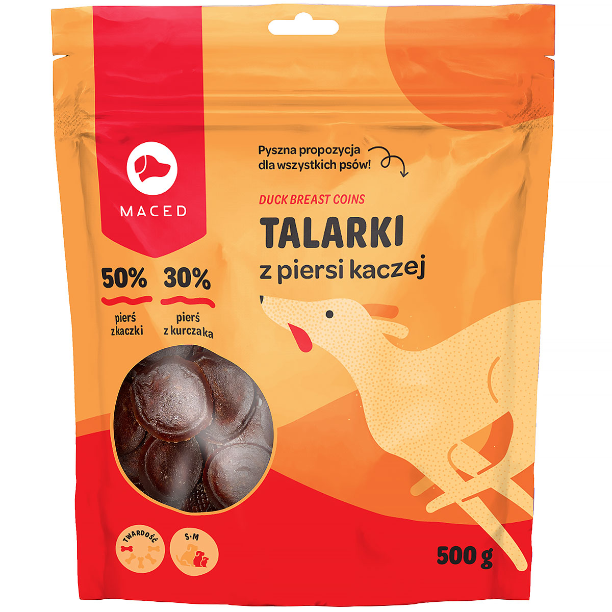 Skład: pierś z kaczki 58%, baranina 27%, glicerol, białko orzechowe, skrobia ziemniaczana, sorbitol, sól. Dodatki: konserwant.
