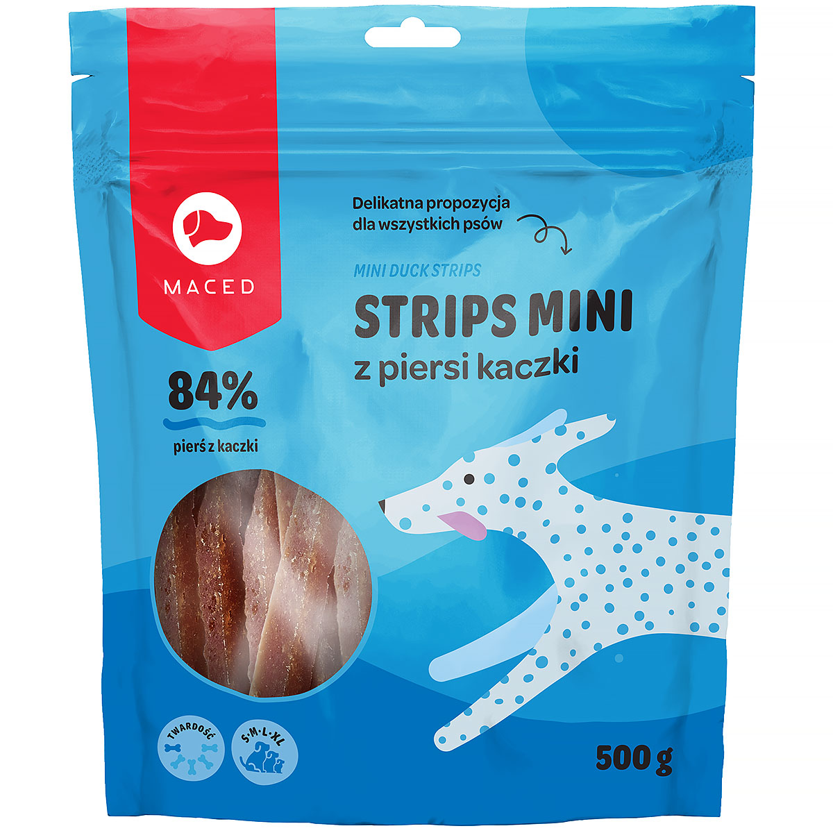 Maced paski z piersi kaczej 0,5 kg smakołyki dla psa dzięki naturalnemu składowi stanowią idealną przekąskę dla wszystkich psów. Paski przygotowane są z produktów pochodzenia zwierzęcego, a dzięki specjalnej technice produkcji zachowują aromat na długo. Specjalna receptura, która została opracowana przez specjalistów weterynarii zawiera smakowite i przydatne mikroelementy. Ogromna staranność polskiego producenta sprawia, że każdy komponent jest dokładnie selekcjonowany, tak aby wybrane zostały wyłącznie najwyższej jakości składniki mięsne, witaminy i minerały, które sprawiają, że przekąska jest zarówno smaczna, jak i bogata w wartości odżywcze dodające energii i dbające o zdrowie naszego psa.