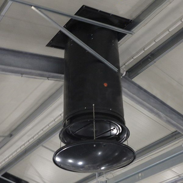 Dedykowana do komina wentylacyjnego fi 65 cm misa zaciemniająca chroniąca wnętrze kurnika czy obory przed padaniem promieni światła. Misa zaciemniająca do komina wentylacyjnego fi 650 mm służy również do ochrony pomieszczenia inwentarskiego przed opadami atmosferycznymi, które mogą przedostać się przez otwór kominowy.