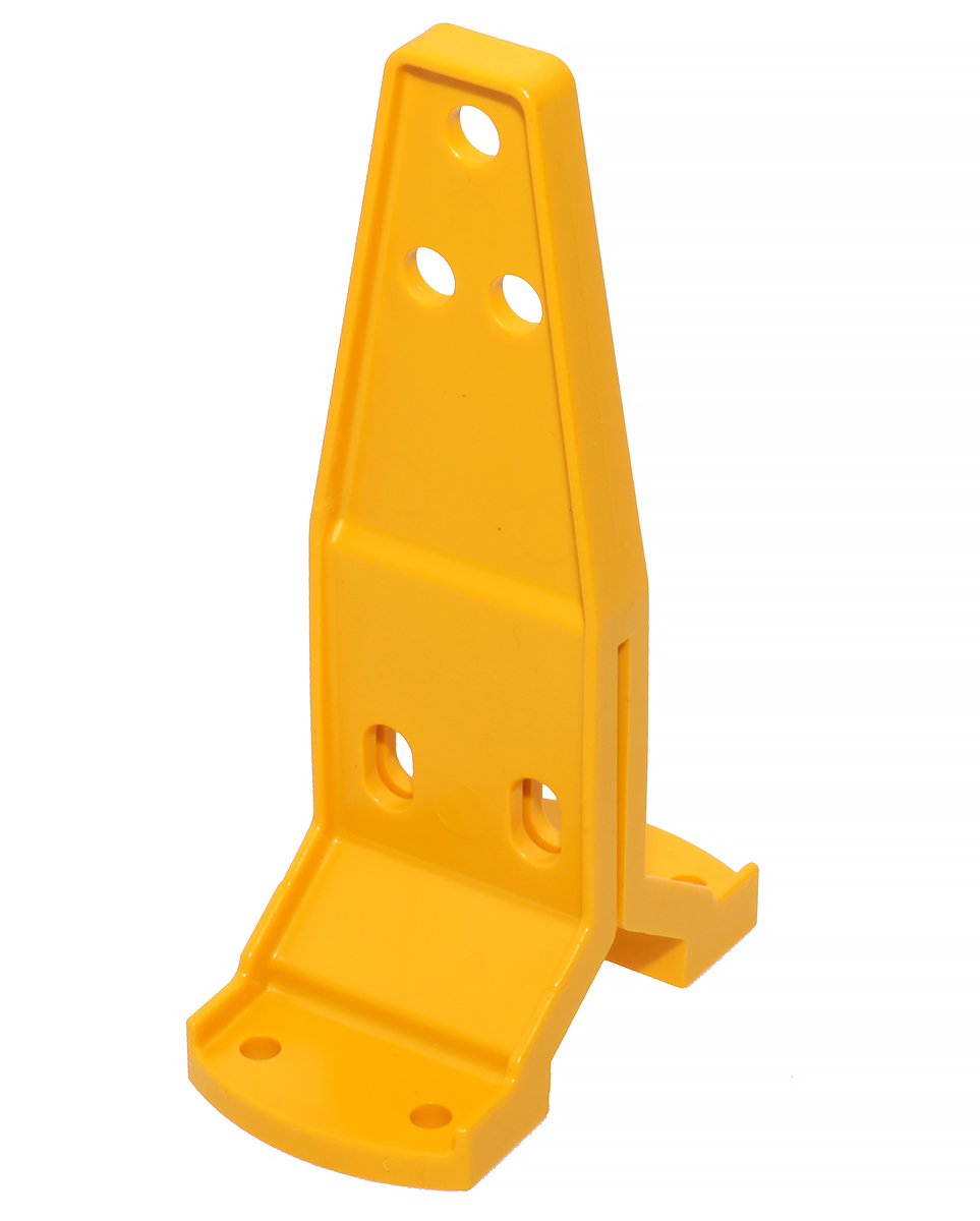 Uchwyt regulatora ciśnienia do linii pojenia wykonany został z wysokiej jakości tworzywa sztucznego charakteryzującego się trwałością oraz odpornością na uszkodzenia. Mocowanie do łączenia regulatora z systemem pojenia indyków posiada 4 otwory montażowe scalające z reduktorem ciśnienia oraz 3 otwory służące do podwieszania na lince stylonowej do systemu pojenia. Wysokość uchwytu mocującego do regulatora ciśnienia wynosi 12 cm. Odpowiednio wyprofilowana budowa mocowania do nośnika alumniowego w systemie pojenia indyków zapewnia szybkość oraz łatwość instalacji.