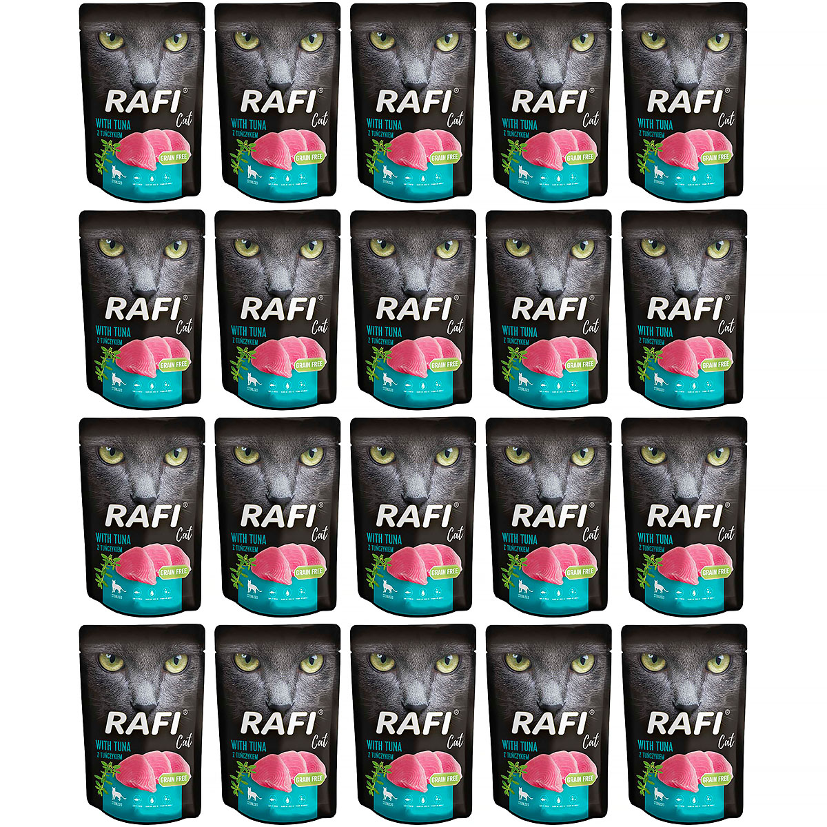 Mokra karma dla kota Rafi z tuńczykiem 20 x 100 ga to doskonały wybór dla Twojego pupila, dostarczając nie tylko intensywnego smaku, ale także bogactwa wartości odżywczych. Ten pełnoporcjowy posiłek został starannie opracowany, aby zaspokoić specyficzne potrzeby kota, a zwłaszcza tych, które wymagają pełnowartościowej diety opartej na zdrowych składnikach.