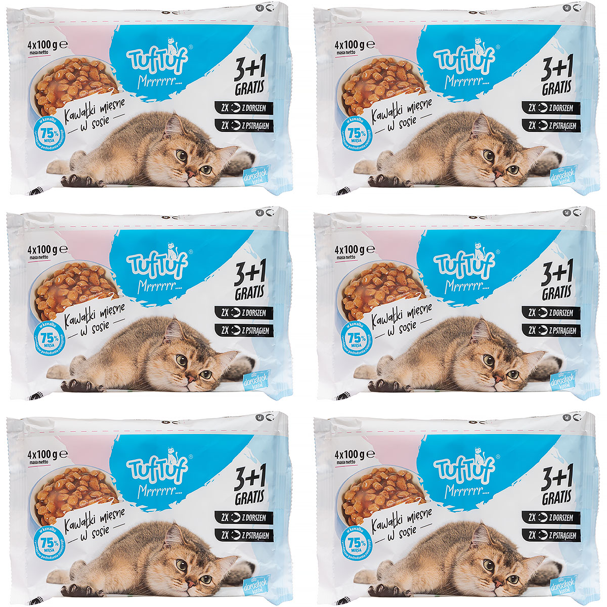 Mokra karma dla kota TUF TUF saszetki dorsz, pstrąg 24 x 100 g to kulminacja smaku i zdrowego odżywiania, stworzona z myślą o zaspokojeniu różnorodnych potrzeb żywieniowych kotów. Doskonale nadaje się zarówno dla młodych, pełnych energii kotów, jak i dla starszych, bardziej wymagających futrzaków.