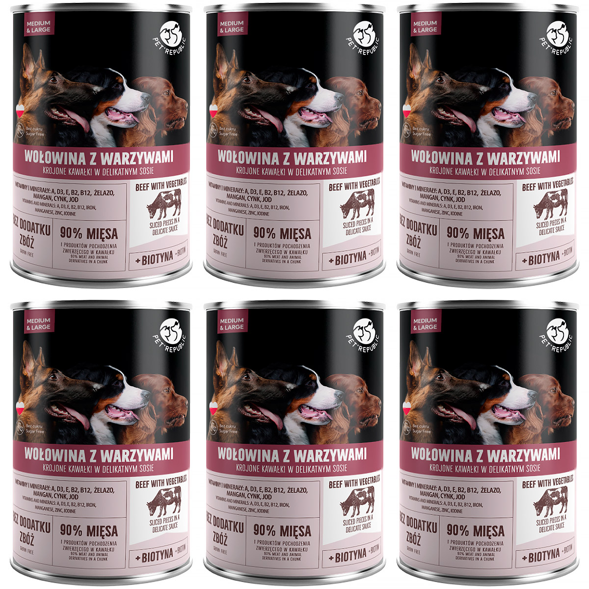 Mokra karma dla psa PetRepublic wołowina i warzywa 6 x 1250 g to wyrafinowane połączenie wołowiny i warzyw, dostarczające psom nie tylko wyjątkowego smaku, ale także niezbędnych składników odżywczych wspierających ich zdrowie i dobre samopoczucie.