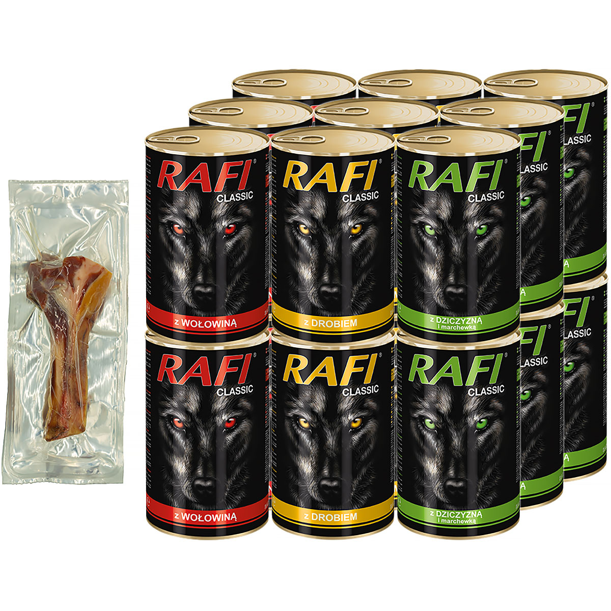 Mokra karma dla psa RAFI Classic mix drób wołowina dziczyzna 18 x 1240 g + kość
