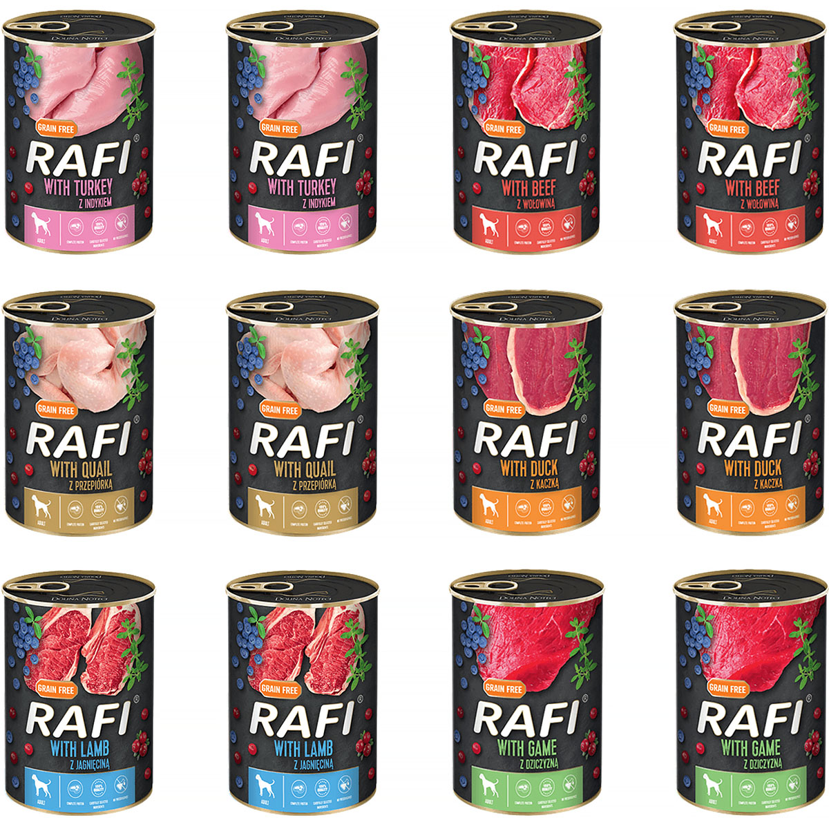 Ten zestaw to nie tylko wyjątkowa uczta smakowa, ale także źródło cennych składników odżywczych, które wspierają zdrowie ogólne, odporność i kondycję psa. Bez dodatku sztucznych substancji, karma RAFI stanowi bezpieczny wybór dla Twojego pupila, dostarczając mu pełnowartościowej i smacznej diety.