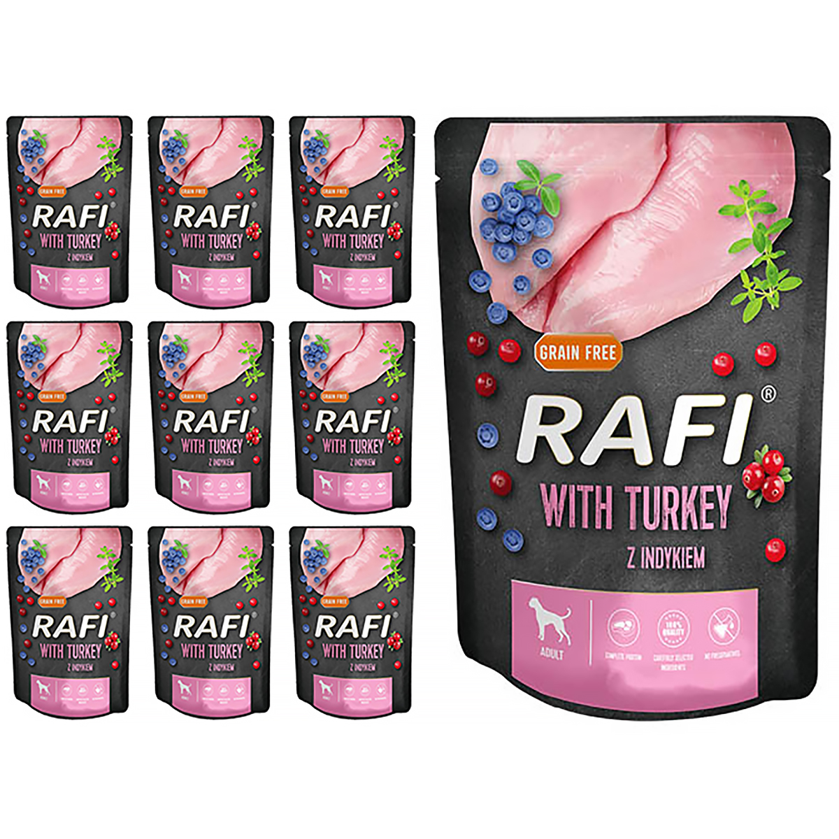 Mokra karma dla psa RAFI z indykiem w saszetkach zestaw 10 x 300 g