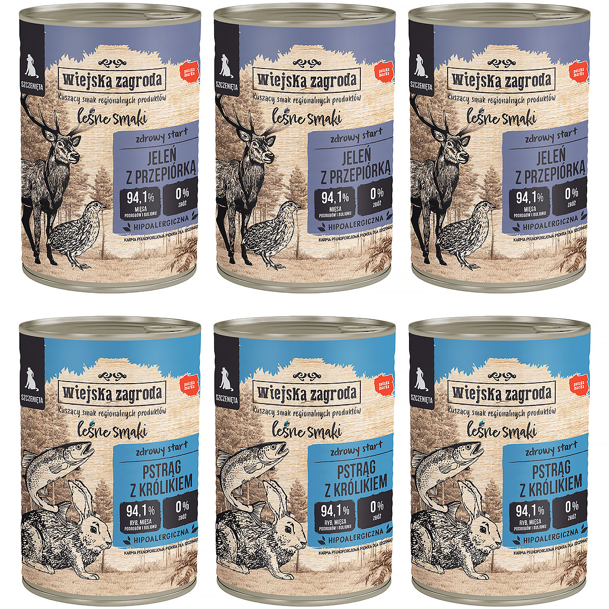 Mokra karma dla psa Wiejska Zagroda Leśne smaki dla szczeniaka zestaw 6 x 400 g