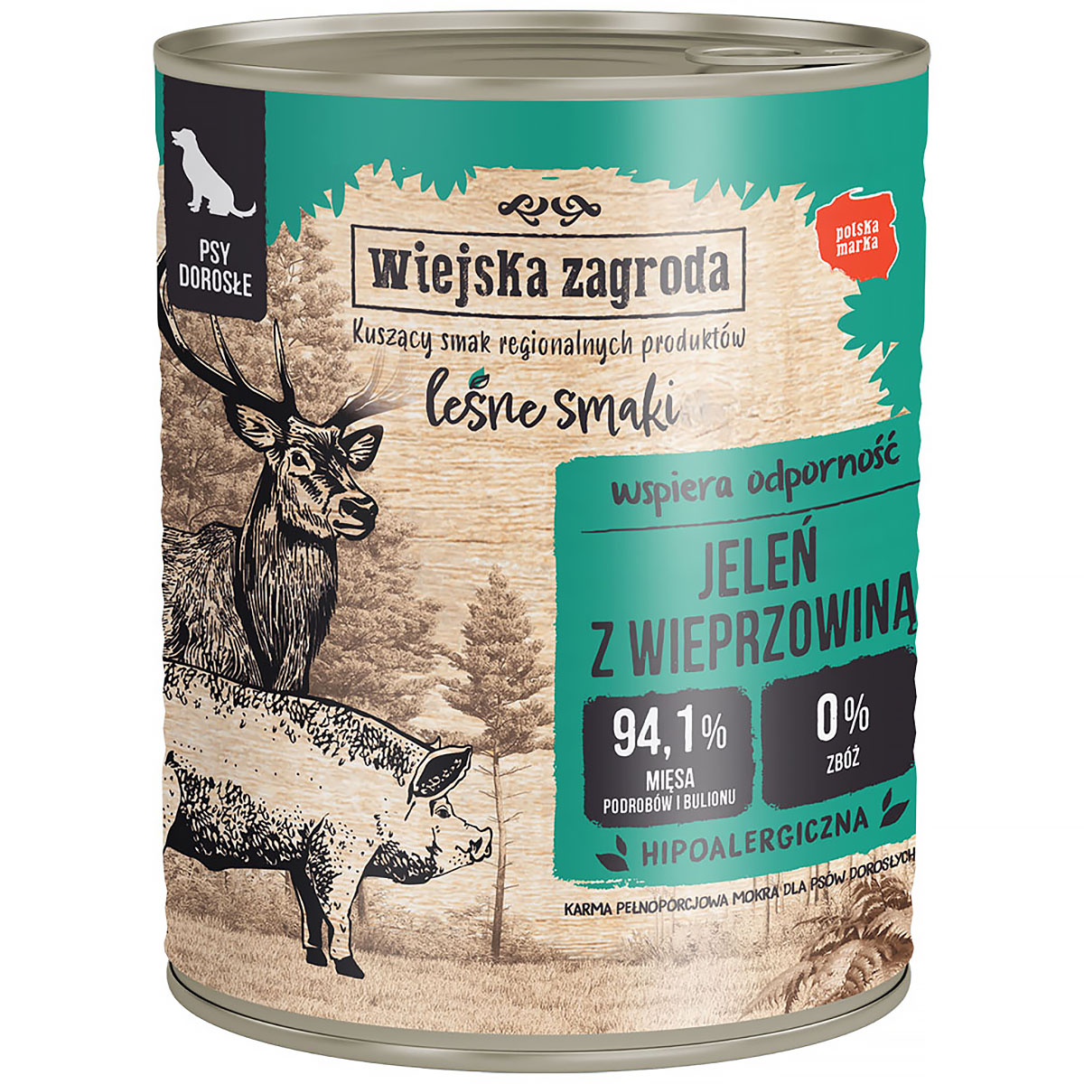Mokra karma dla psów z dużą zawartością mięsa to bogactwo wysokiej jakości składników odżywczych, które pozytywnie oddziałują na kondycję i wygląd czworonogów. Karma dla psa z jelenia ma wyjątkowy smak i aromat i jest źródłem wielu cennych witamin i minerałów. Karma dla psa z jeleniem i wieprzowiną nie zawiera zbóż i ma niski poziom węglowodanów.