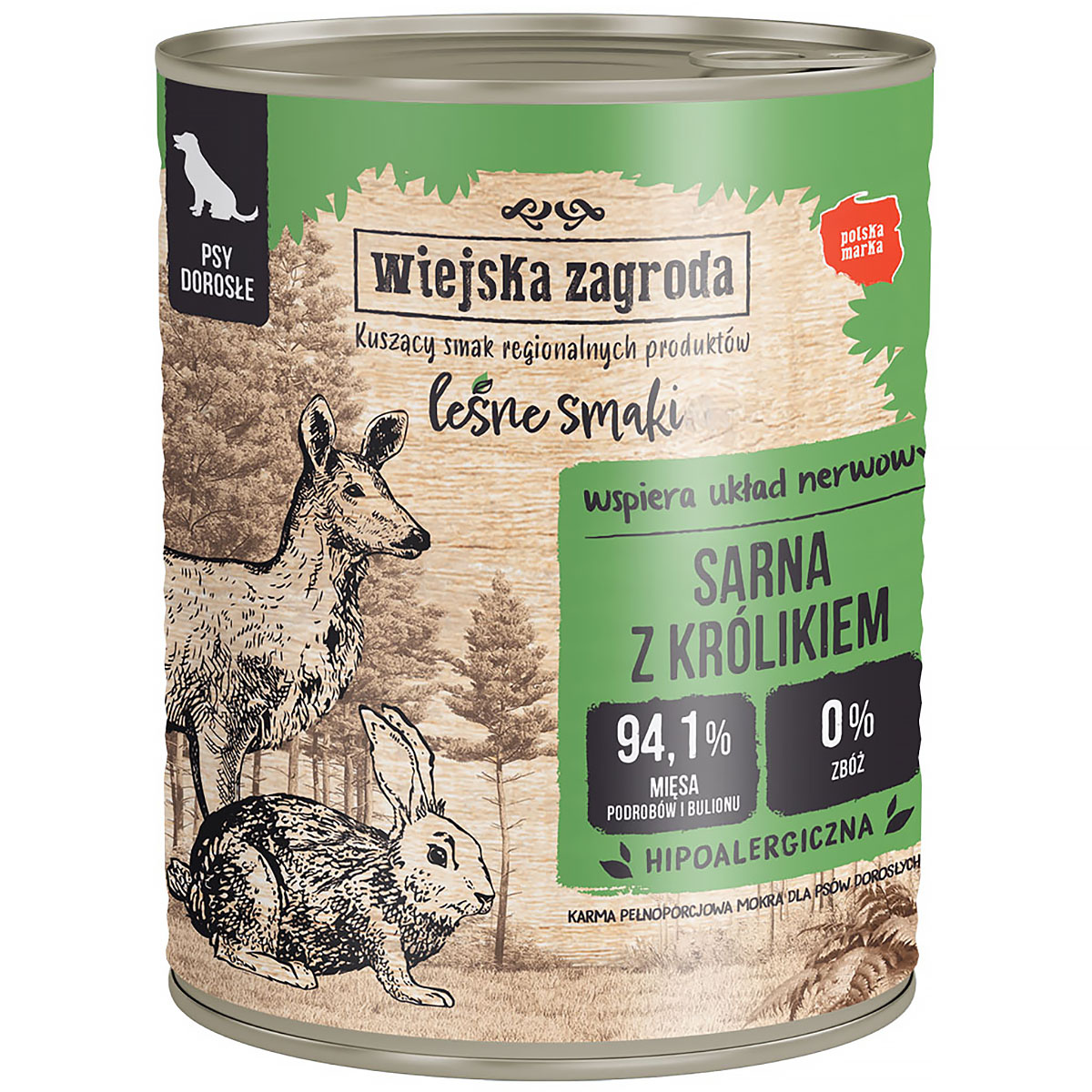Wiejska Zagroda Leśne smaki Sarna z królikiem 800 g - hipoalergiczna mokra karma dla dorosłych psów wszystkich ras.