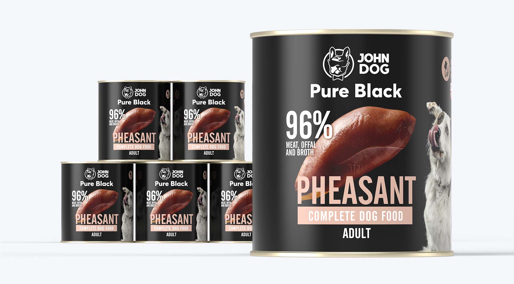 Mokra karma John Dog Pure Black z bażantem - zestaw 6 x 800 g. Karma dla dorosłych psów o smaku bażanta. Mięso z bażanta z rosołem stanowi 96% karmy i jest głównym źródłem łatwo przyswajalnego białka, bogatego w żelazo oraz aminokwasy. Poza tym mięso z bażanta cechuje niska zawartość tłuszczu. Dodatek w postaci ostropestu oraz drożdży piwnych korzystnie wpływa na układ trawienny czworonogów.
