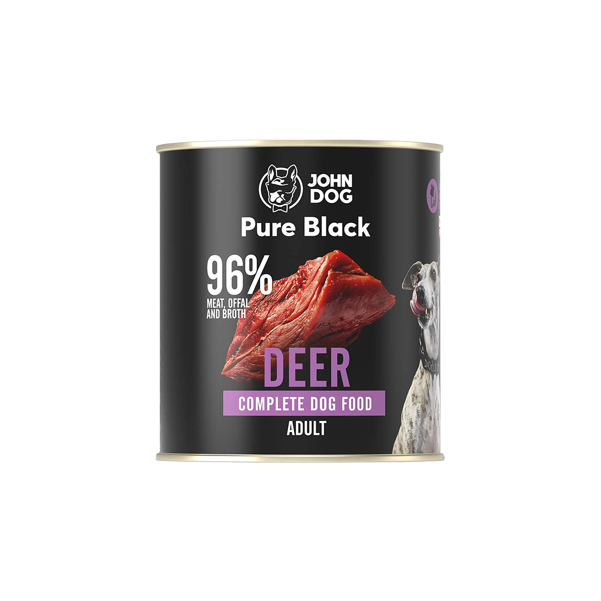 Bardzo smaczna mokra karma dla psów wszystkich ras. Karma John Dog to naturalna kompozycja składników, oparta na bazie jednego mięsa - z jelenia. Monoproteinowa karma zawierająca tylko jedno źródło białka zwierzęcego jest pożywieniem odpowiednim dla psów z alergiami.