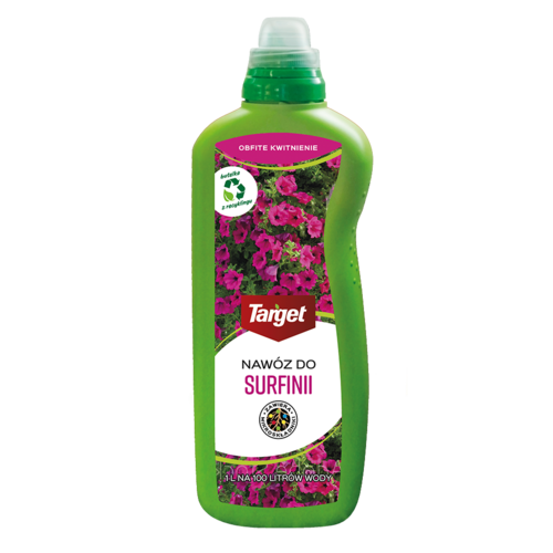 Płynny nawóz do surfinii pobudzający kwitnienie. Preparat odżywczy Target dostarcza roślinom składników zapewniających obfite kwitnienie i zdrowy wygląd.