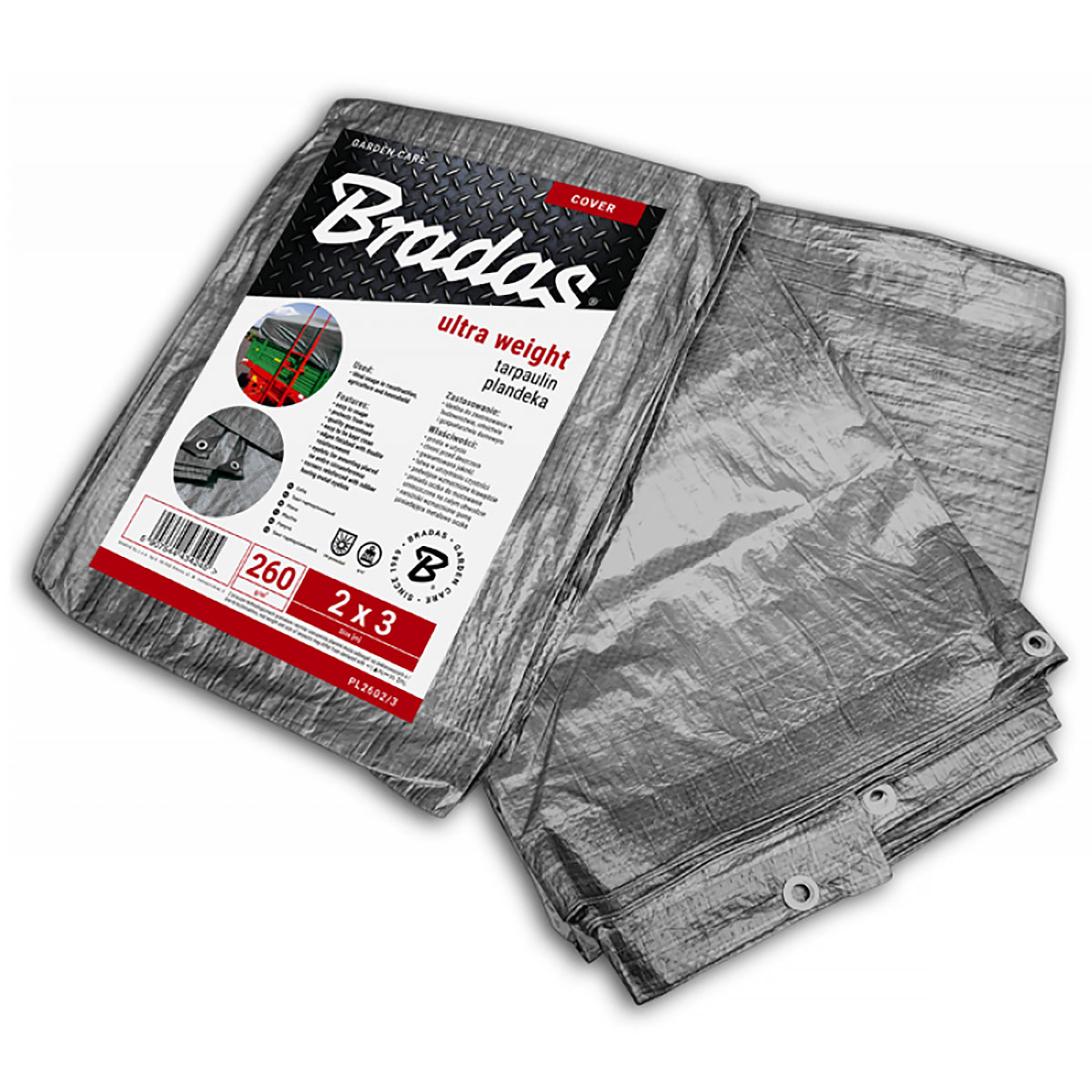 Plandeka wzmacniana szara 3 x 4m 260 g/m2 marki BRADAS to doskonałe rozwiązanie do tymczasowego zabezpieczania i okrywania przedmiotów zarówno wewnątrz pomieszczeń, jak i na zewnątrz. Wyjątkowa konstrukcja plandeki obejmuje aluminiowe oczka rozmieszczone na całym obwodzie, które ułatwiają jej stabilne mocowanie.