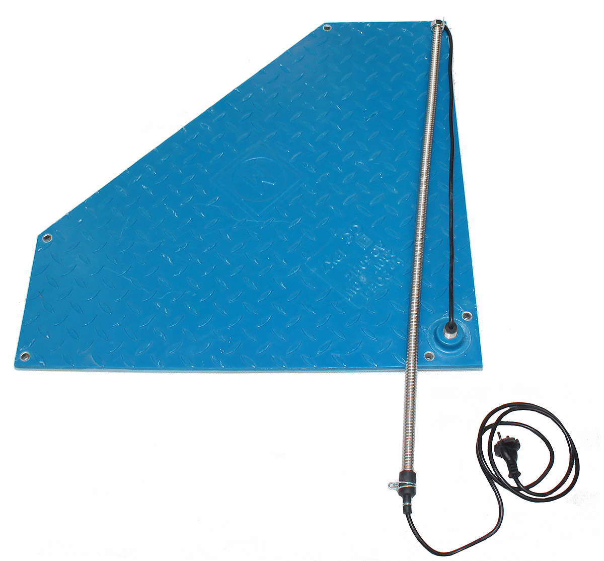 Powierzchnia płyty grzewczej dla trzody ma kształt trójkąta o wymiarach 68x66x68cm. Jest ona w stanie pomieścić prosięta z jednego miotu czyli maksymalnie ok. 14-16szt.Płyta zasilana jest prądem z sieci 230V. Do zestawu dołączony jest przewód zasilający w elastycznej rurze ze stali nierdzewnej aby świnie nie były w stanie uszkodzić lub przegryźć przewodów.