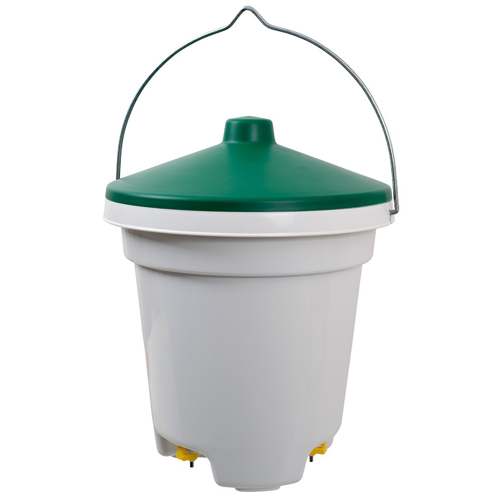 Zasobnik poidła posiada kształt wiadra z zamykaną pokrywą, która chroni wodę przed zanieczyszczeniem. Poidła smoczkowe umożliwiają łatwe pobieranie wody przez drób także kilkudniowe kurczęta. Dzięki zestawowi do podwieszenia mamy możliwość łatwej i szybkiej regulacji wysokości podwieszenia za pomocą ślizgacza.