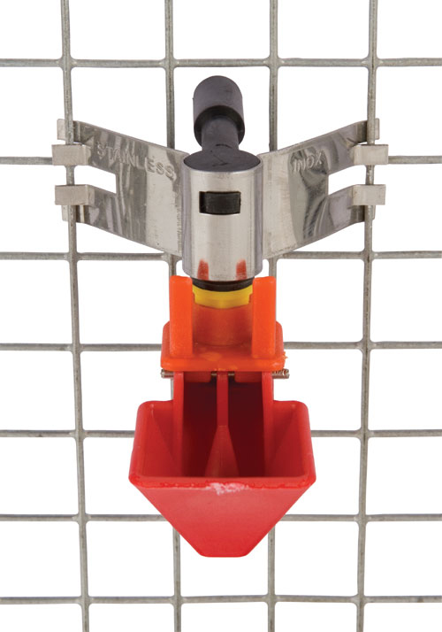 wyprofilowane zaczepy sprawiają, że poidło jest solidnie przytwierdzone. Urządzenie połączone jest z innymi elementami systemu pojenia za pomocą