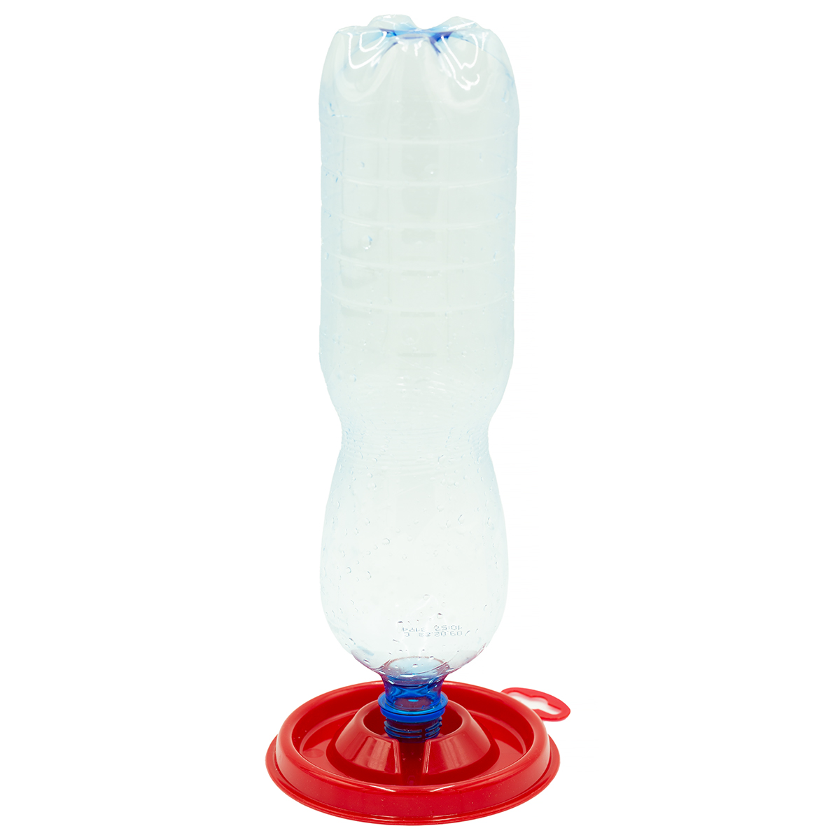 Praktyczne i poręczne poidło przeznaczone dla drobnego drobiu, a także piskląt i kurcząt. Poidło podstawkowe działa na bardzo prostej zasadzie. na podstawkę nakładamy dowolną butelkę plastikową np. po napoju (do tego poidła przewidziana jest butelka o pojemności od 0,5 do jednego litra). Woda dozowana będzie automatycznie na zasadzie różnicy ciśnienie.