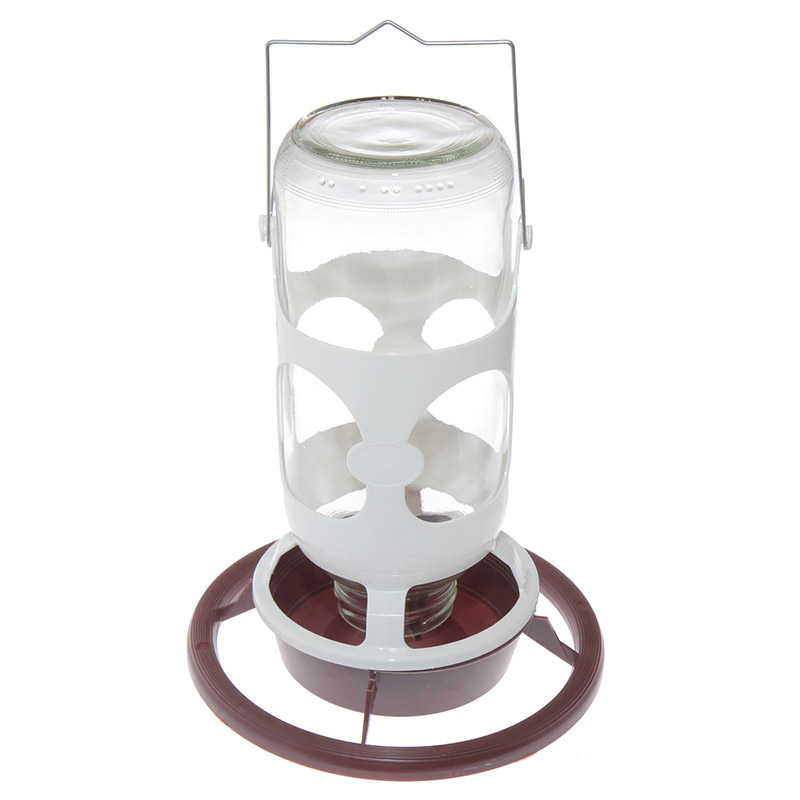 Wysokiej jakości poidło dla ptaków egzotycznych przeznaczone do dużych klatek lub wolier. Poidło dla papug i kanarków posiada wygodny uchwyt, który pozwala na zawieszenie pojnika w dowolnym miejscu woliery. Poidło dla papug wykonane zostało z najwyższej jakości materiałów: mocnej szklanej butelki o pojemności 1 l oraz osłony i miseczki z tworzywa sztucznego. Miskę z butelką solidnie łączy się za pomocą uchwytu z osłoną chroniącą szklany zasobnik przed uszkodzeniem.
