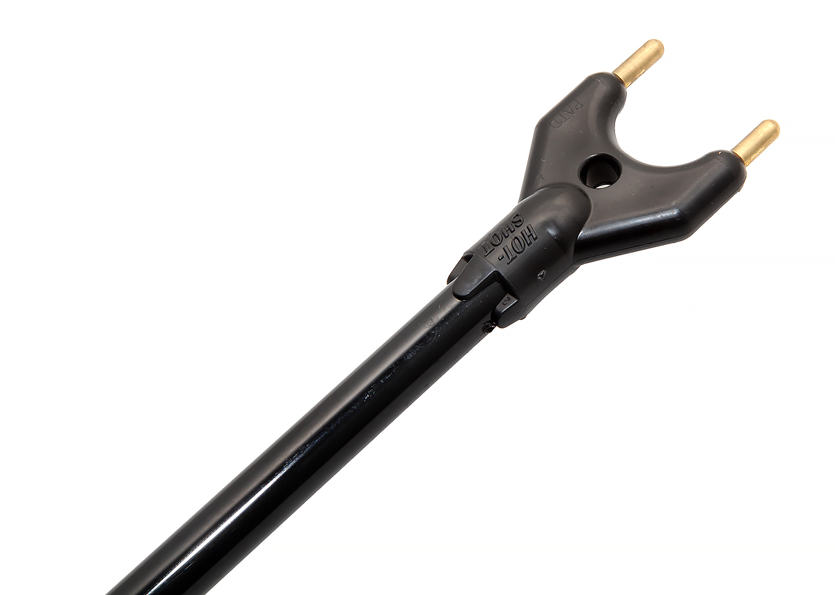 Przedłużka do poganiacza dla bydła zakończona jest dwoma elektrodami, które generują impulsy o odpowiedniej sile rażenia. Wysięgnik do poganiacza elektrycznego Hot-Shot wykonany został z elastycznego włókna szklanego, dzięki czemu przedłużka odporna jest na gięcie czy uszkodzenia, co jest bardzo ważne w przypadku przepędzania silnych zwierząt, takich jak byki.