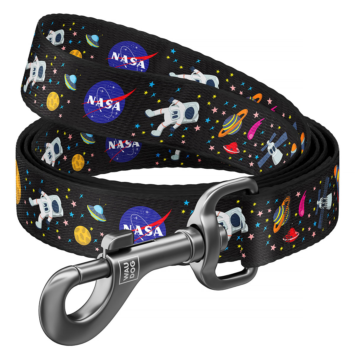 Smycz dla psa wzór NASA 15 mm długość 122 cm to kolejny stworzony z wysokiej jakości materiału produkt z nylonowej serii marki WAUDOG. Smycz to niezbędny element, aby zagwarantować naszemu pupilowi bezpieczeństwo w trakcie spaceru. To nie tylko praktyczne akcesorium przydatne w pewnych sytuacjach, ale również swego rodzaju sposób wyrażenia stylu lub charakteru naszego pupila. Oryginalny wzór NASA, który jest widoczny na smyczy sprawia, że jest ona elegancka i w pewien sposób wyraża osobowość zarówno zwierzęcia jak i właściciela.