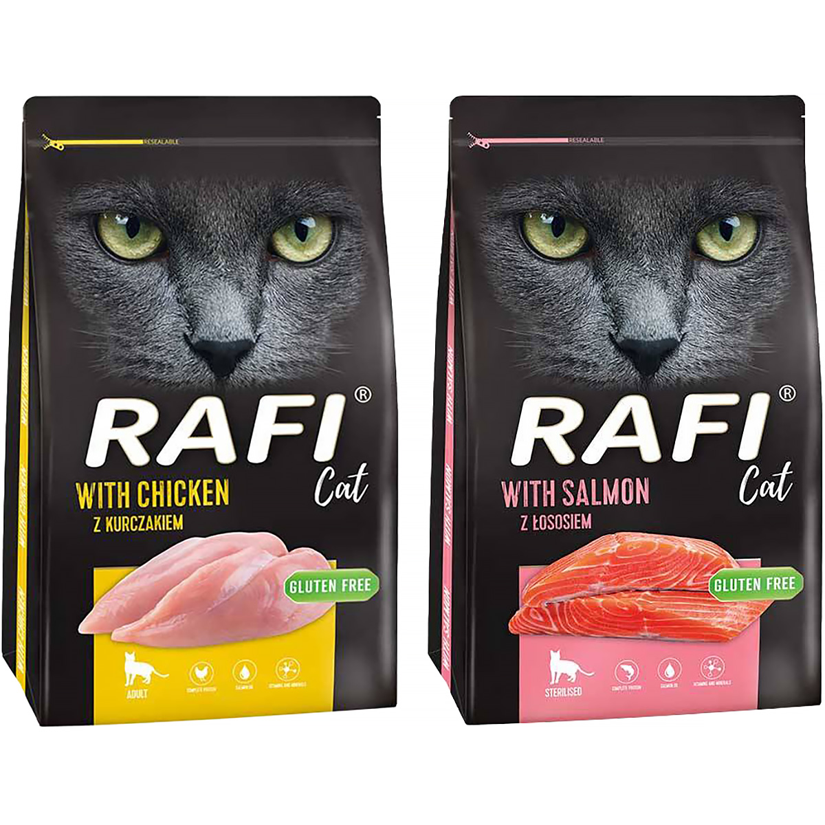 Sucha karma dla kota bez zbóż Rafi Cat mix kurczak łosoś 2 x 7 kg to doskonały wybór dla Twojego kota, zapewniając mu pełnowartościowe i zbilansowane odżywienie. Dzięki starannie wyselekcjonowanym składnikom, karma ta dostarcza wszystkich niezbędnych składników odżywczych, które są niezwykle istotne dla zdrowia i kondycji Twojego pupila.