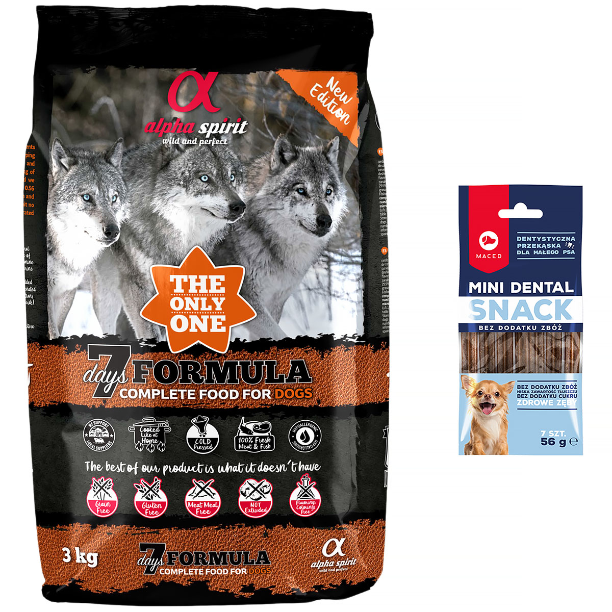 Półmiękka karma dla psa Alpha Spirit 7 Days formuła w opakowaniu 3 kg + Gratis.