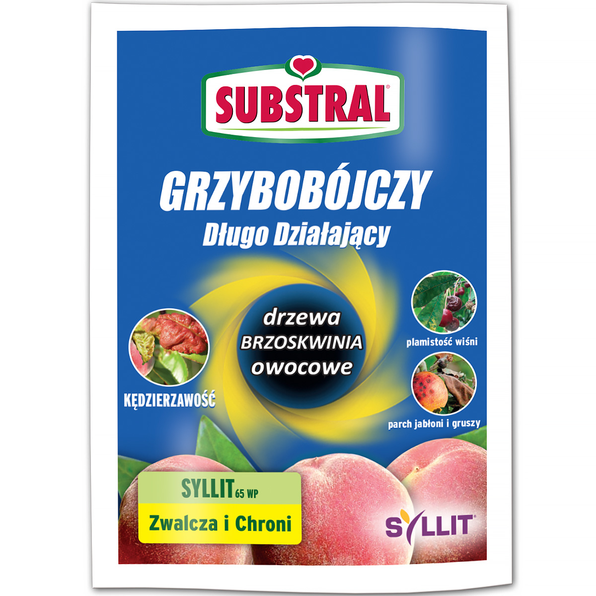 Środek SYLLIT do specjalistyczny i interwencyjny środek grzybobójczy do drzew owocowych, w szczególności brzoskwiń, u których zwalcza kędzierzawość. Producent poleca go również jako oprysk przeciw torbieli na śliwach, parchowi w jabłoniach i gruszach oraz plamistości wiśni i czereśni. Preparat ma strukturę proszku, który rozrabia się w wodzie, a po naniesieniu na drzewa zapewnia długą ochronę – zabija i zapobiega nawrotom.